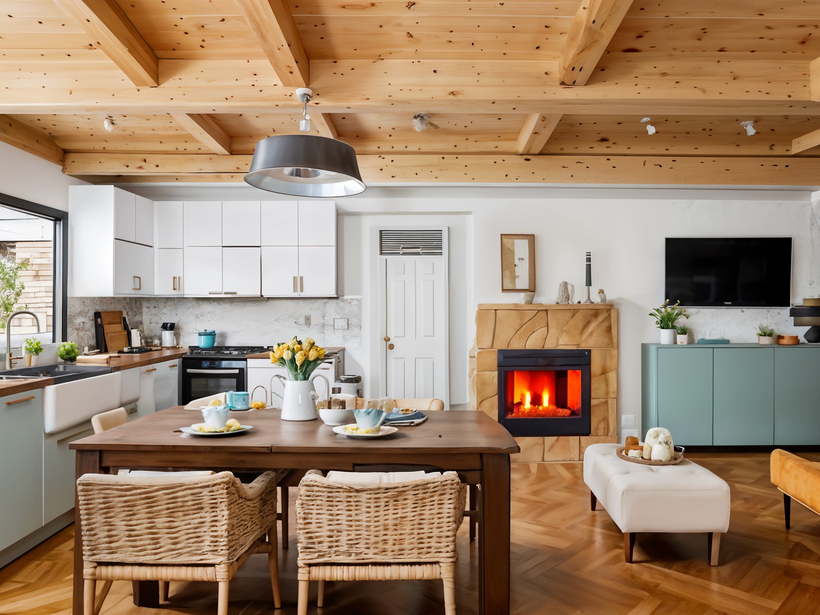 Blovické dřevodomy splňující energetickou třídu B. Úsporné a ekologické vytápění domu zajišťuje tepelné čerpadlo a krbová vložka s výměníkem (obojí v ceně).